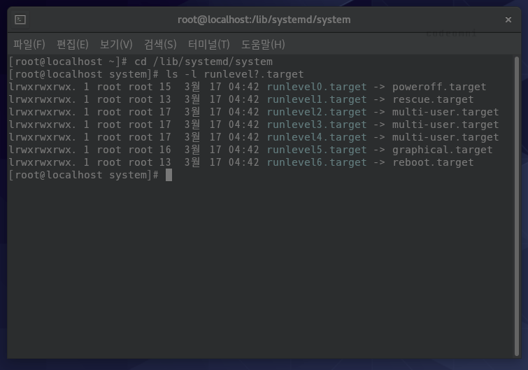 ▲ ls -l 명령어로 runlevel를 확인합니다.