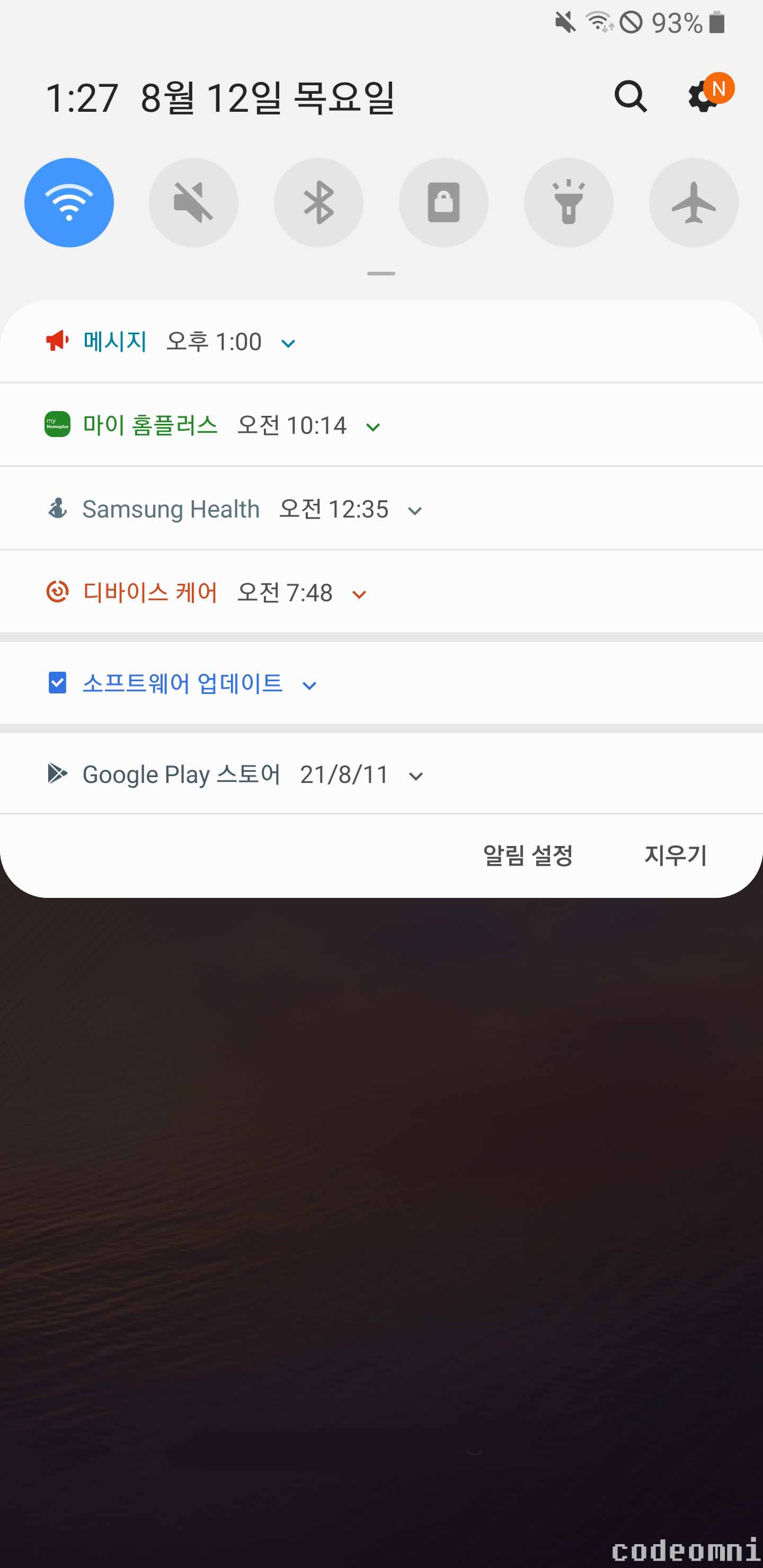 ▲ 알림에서 알림 내용의 표시를 해제한 화면입니다.