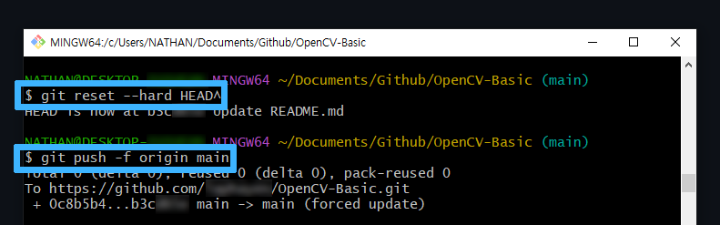 먼저, 커밋을 되돌릴 리포지토리로 이동합니다.(본인은 cd 명령어 사용)