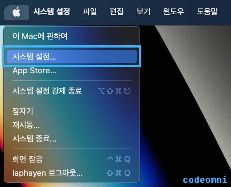 ▲ Launchpad나 Apple 로고를 클릭해서 시스템 설정을 실행합니다.