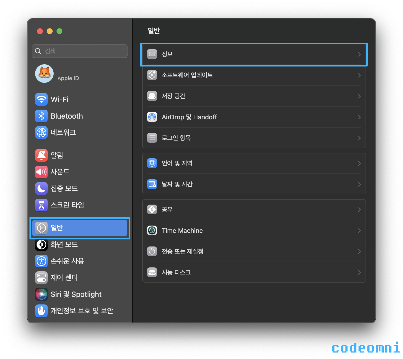 ▲ 일반 메뉴에서 가장 위에 있는 정보를 클릭합니다.