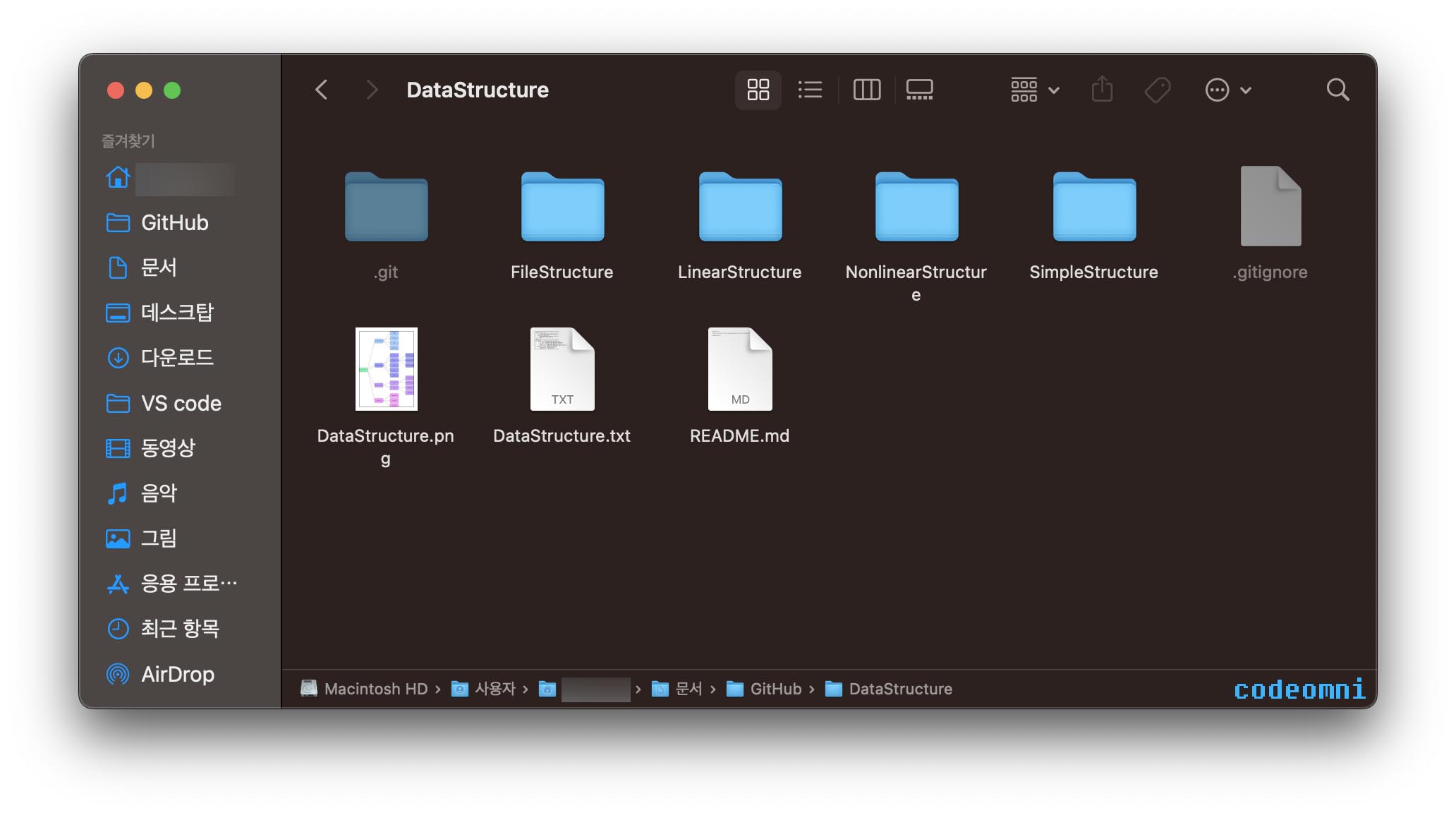 다시, 파일들을 숨기기 위해서 폴더에서 command + shift + .(점) 단축키를 누릅니다.