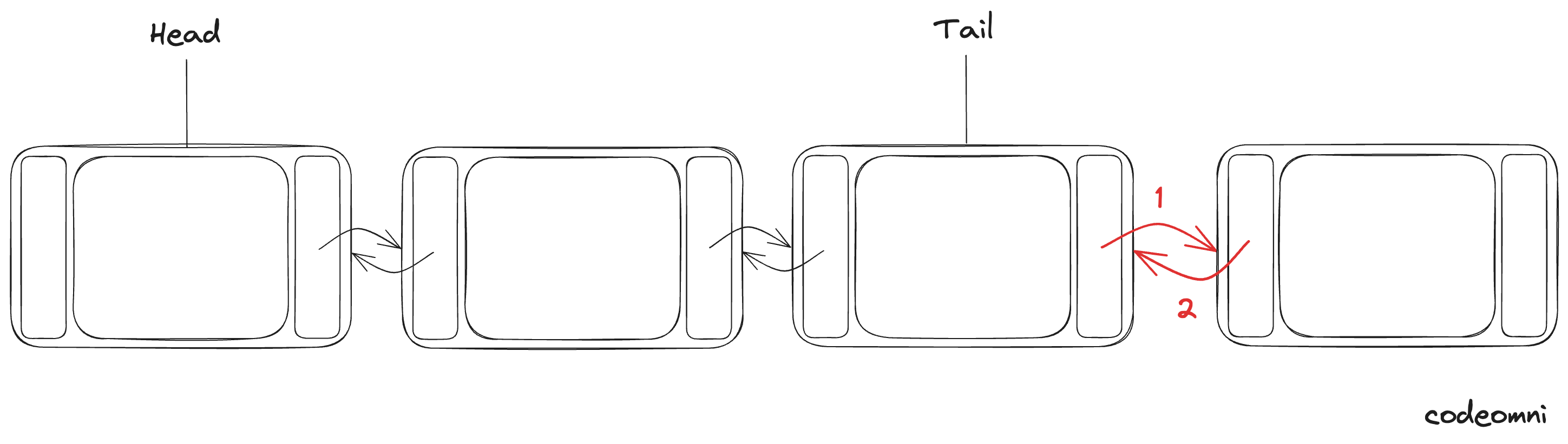 Tail 노드에 다음 포인터를 새 노드에 연결해주고, 새 노드의 이전 포인터를 Tail로 연결해줍니다.
