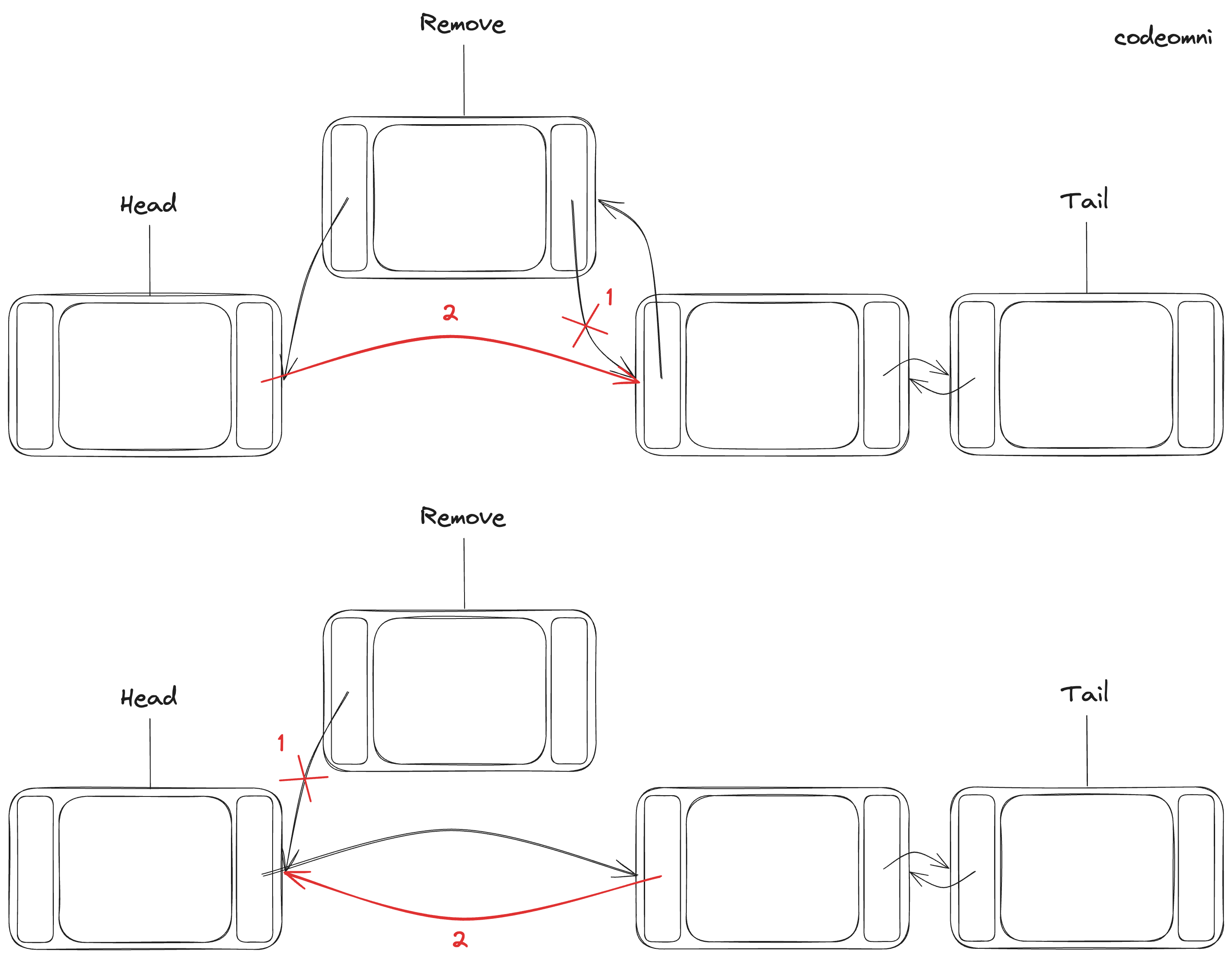다음 노드를 가리키는 포인터뿐만 아니라 이전 노드를 가리키는 포인터를 추가하는 방법입니다.