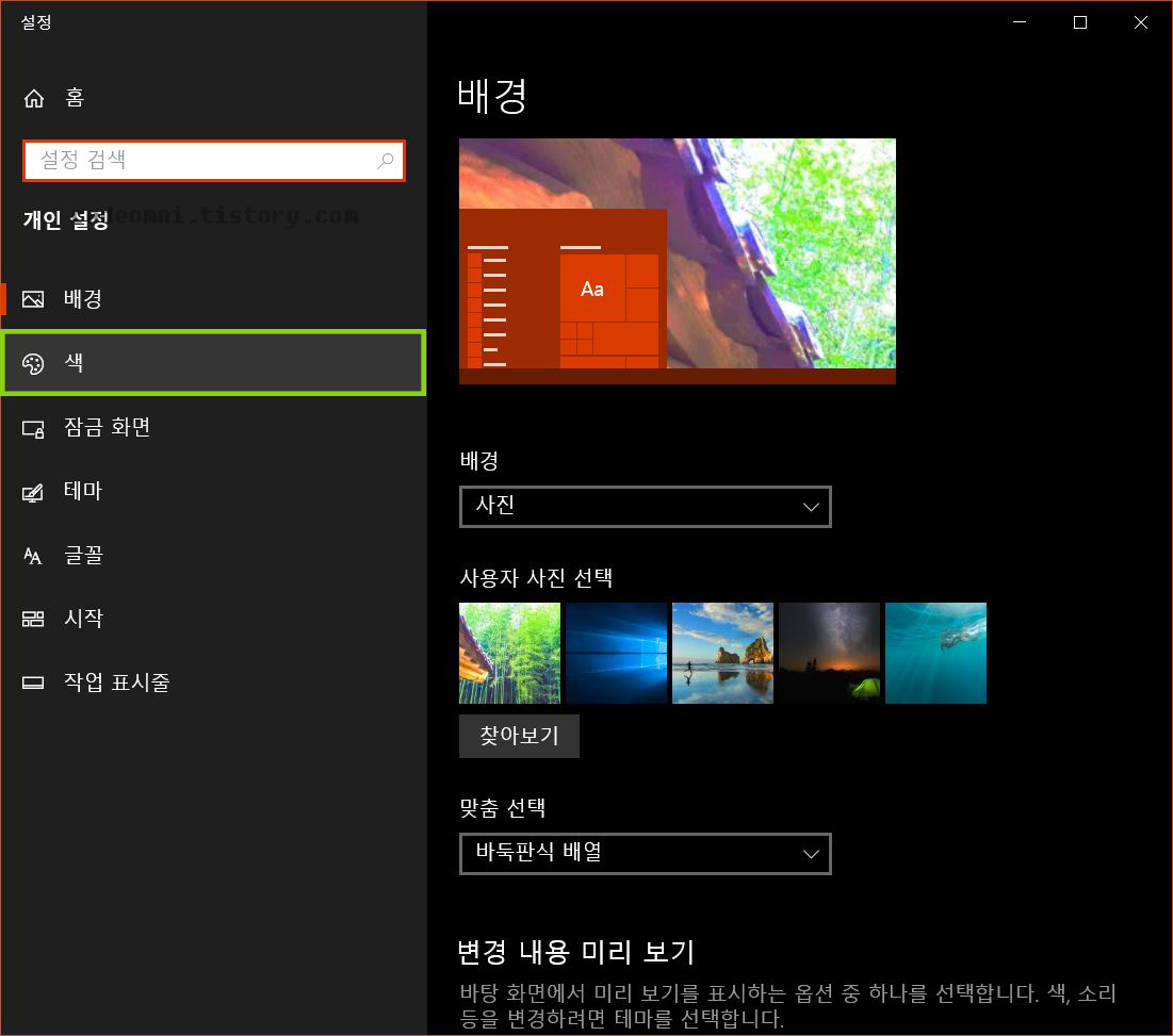 이번 포스팅은 윈도우10에서 테마 색상 변경하기입니다.