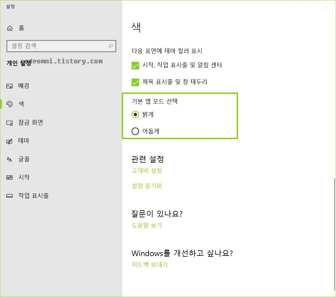 이번 포스팅은 윈도우 10에서 기본 앱 모드 선택 변경하기입니다.