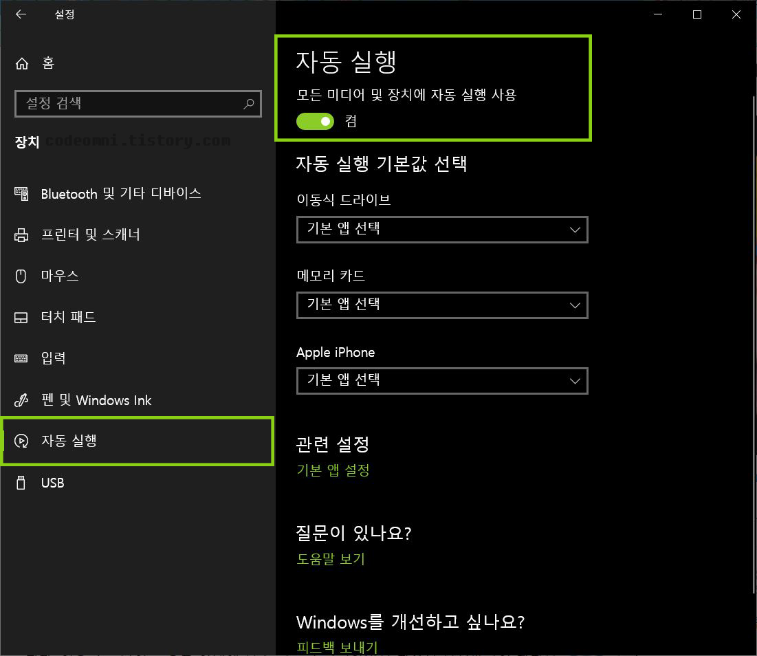 ▲ 왼쪽 네비게이션에 있는 자동 실행을 클릭합니다.