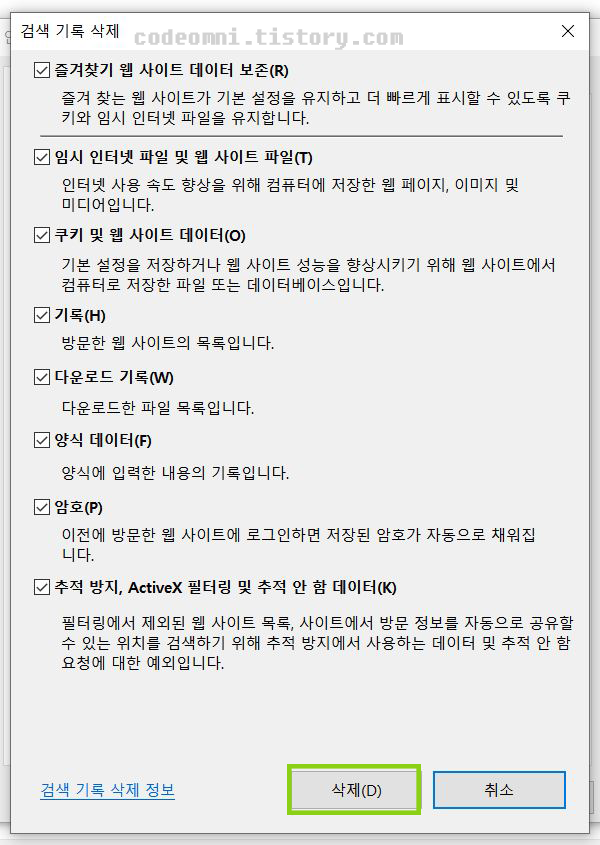[Internet Explorer] 익스플로러 검색 기록 삭제 쿠기 캐쉬 ActiveX 지우기 꿀팁 임시 인터넷 파일 및 웹 사이트 파일, 쿠키 및 웹 사이트 데이터, 기록, 다운로드 기록, 양식 데이터, 암호, 추적 방지. ..