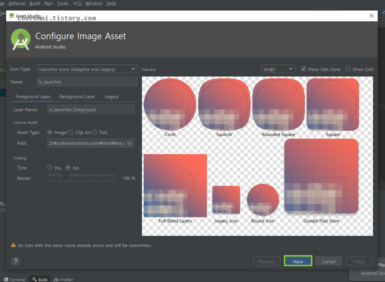 ▲ Configure Image Asset에 들어가면 원하는 형태로 아이콘을 만들 수 있습니다.