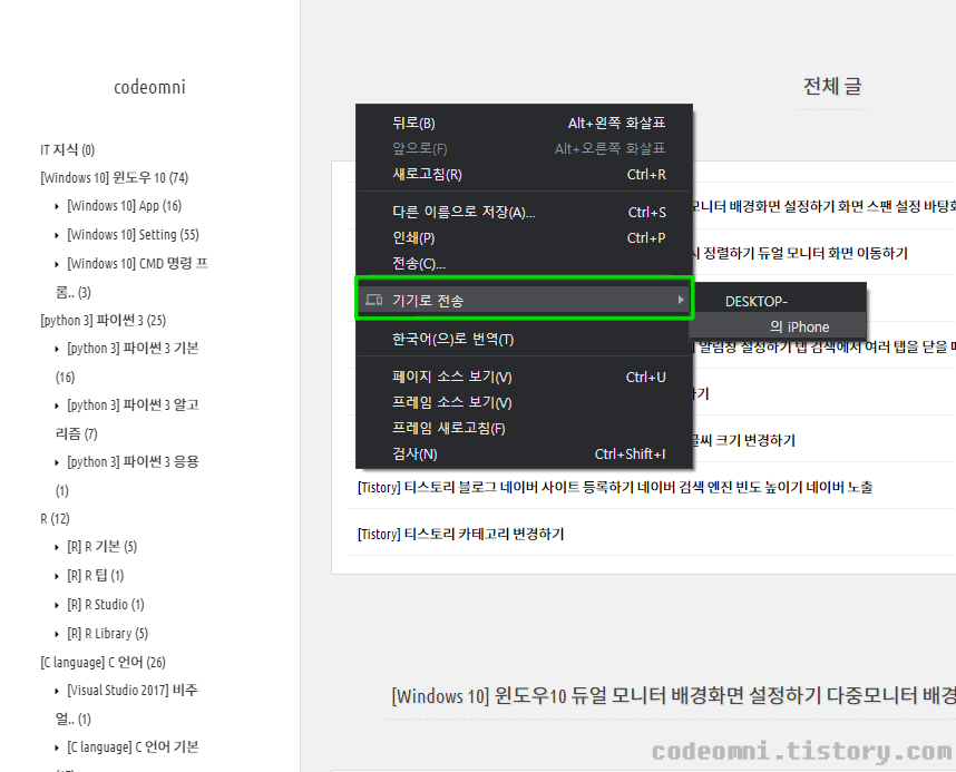 이번 포스팅은 크롬에서 웹 페이지 다른 기기로 전송하기입니다.
