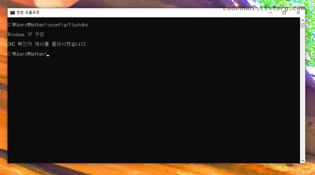 ▲ 명령어 ipconfig /flushdns를 입력합니다.