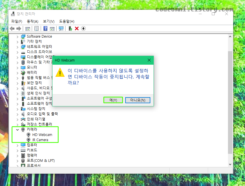 [Windows 10] 윈도우10 웹캠 카메라 디바이스 사용 안함 설정하기