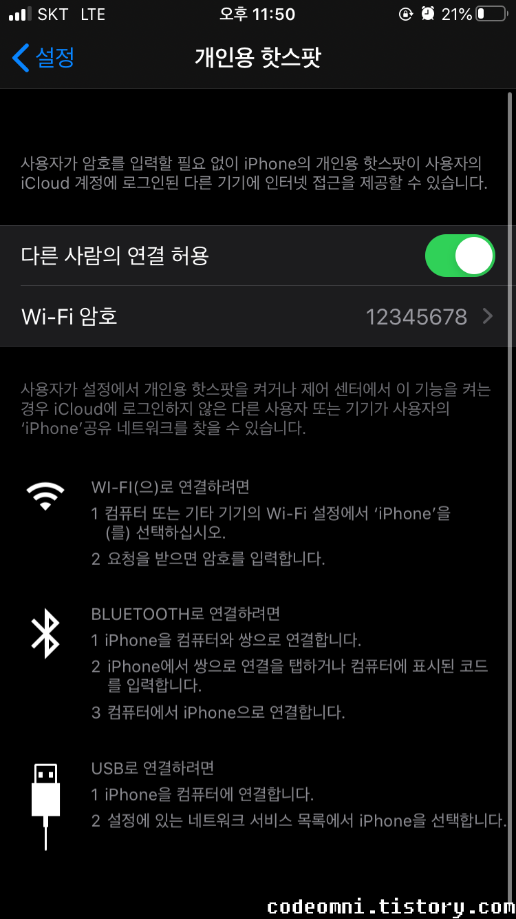 이번 포스팅은 아이폰의 개인용 핫스팟 연결하기입니다.