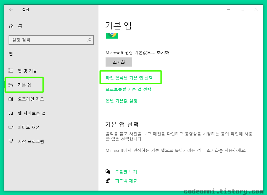 ▲ 스크롤 후 파일 형식별 기본 앱 선택을 클릭합니다.