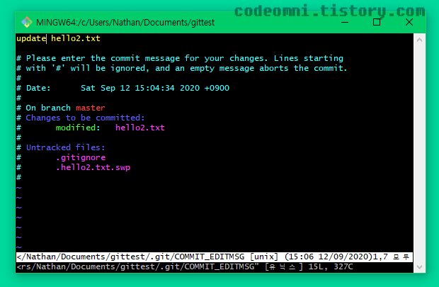▲ git commit --amend 명령어를 입력합니다.