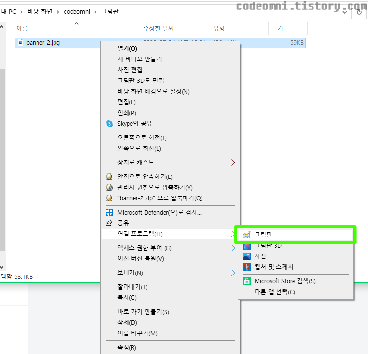 ▲ 변경할 이미지 파일을 선택하여 그림판으로 파일을 실행합니다.