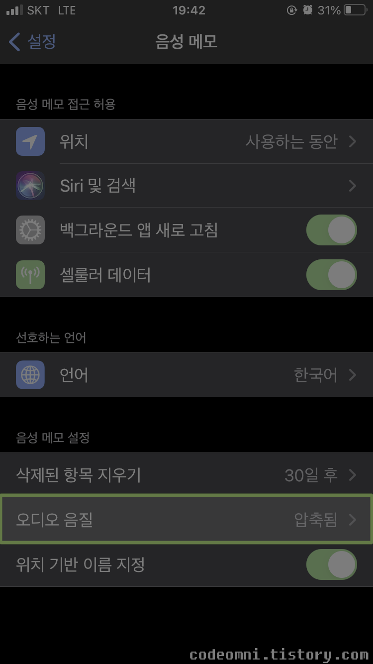 [i Phone] 아이폰 음성메모 무손실 압축 설정하기 오디오 품질 압축됨 변경
