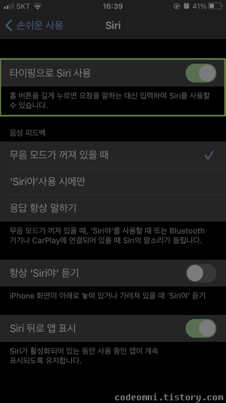이번 포스팅은 아이폰의 시리의 타이핑 모드 사용하기입니다.