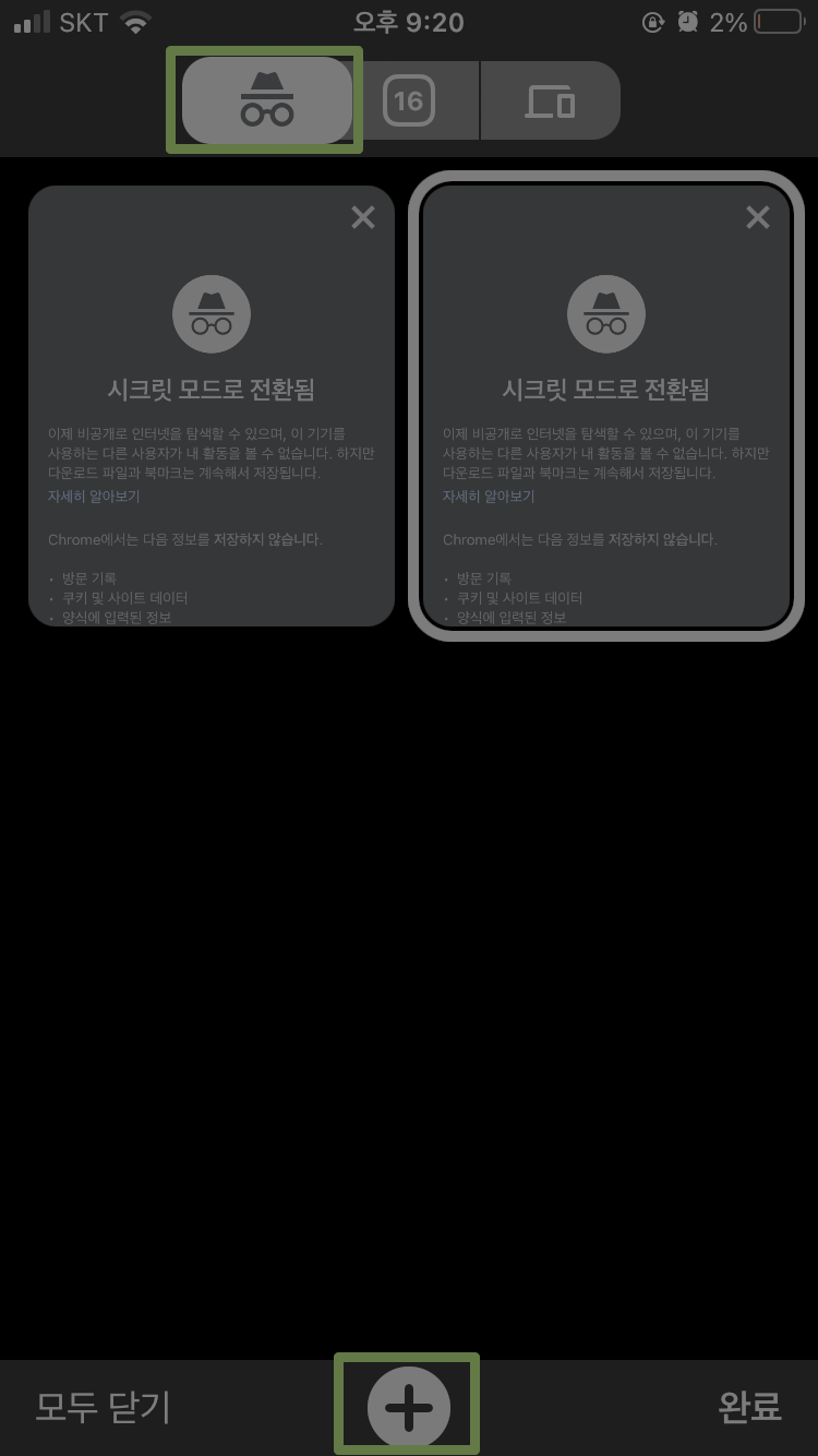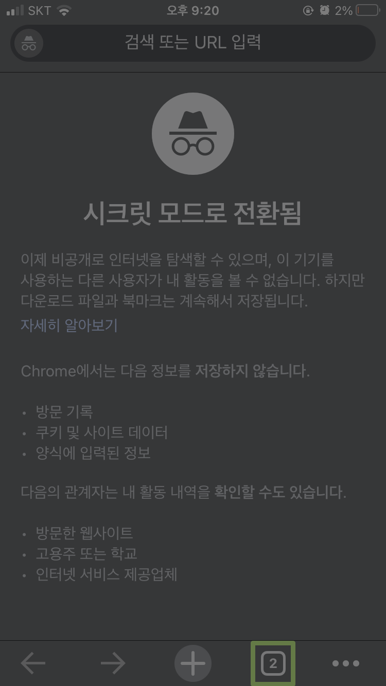[ios App] 앱 크롬 시크릿 모드 탭 사용하기 정보 비공개 탭 설정 내역 비공개