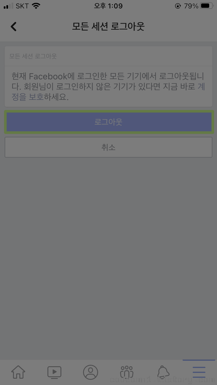 [ios App] 앱 페이스북 모든 세선 로그아웃 하는 방법 설정 변경하기 기기 데스크탑 PC 스마트폰 모바일 logout하기