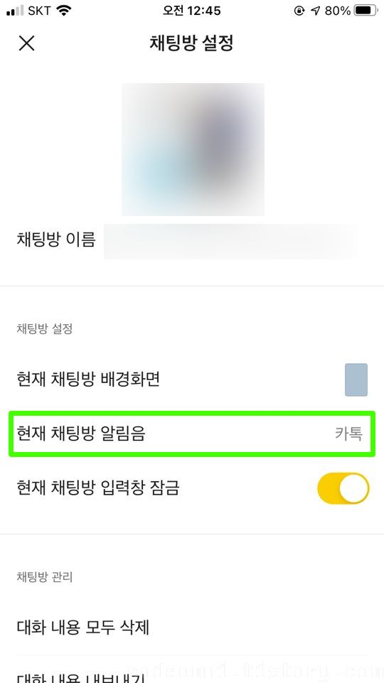 채팅방마다 다르게 알림음을 설정하는 방법입니다.